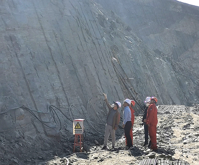 近日,隊(duì)黨委書記袁勝超深入巖土工程公司新疆蒙庫鐵礦邊坡治理項(xiàng)目部調(diào)研。