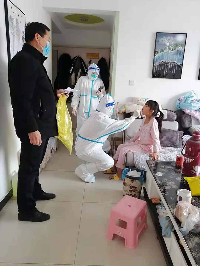 ——有序采樣,不落一人。環(huán)境工程公司黨支部李維欣同志和妻子齊上陣,在社區(qū)分配到志愿服務(wù)任務(wù)時(shí)挺身而出,義無反顧地穿梭在樓宇和人群中。他們跑上跑下,挨門挨戶登記,生怕漏掉一個(gè)人,邀請鄰居們?nèi)肴海怂釞z測前又挨個(gè)通知大家按照時(shí)間節(jié)點(diǎn)下樓排隊(duì)檢測,采樣期間主動(dòng)拉起警戒線,毅然做好秩序維護(hù),當(dāng)好小區(qū)“保障員”,確保不扎堆,不排長隊(duì),銜接合理、有序高效。寒冷的冬天里他們戴著憋悶的口罩,氣喘吁吁,嚴(yán)實(shí)的棉服卻冒著“熱氣”,時(shí)而不時(shí)用衣袖擦拭額頭的汗水。面對社區(qū)交給的任務(wù),他們毫不退縮,他們的選擇就是沖鋒在前、逆行而上,確保社區(qū)有序采樣,不落一人。