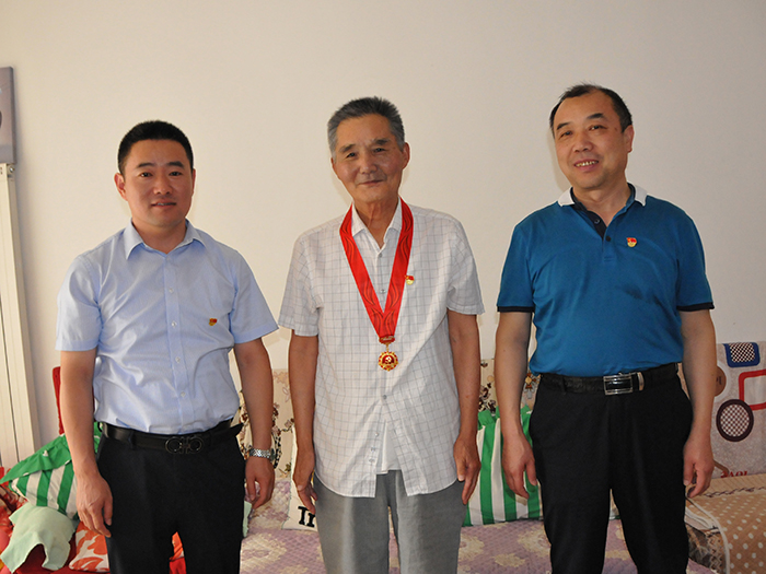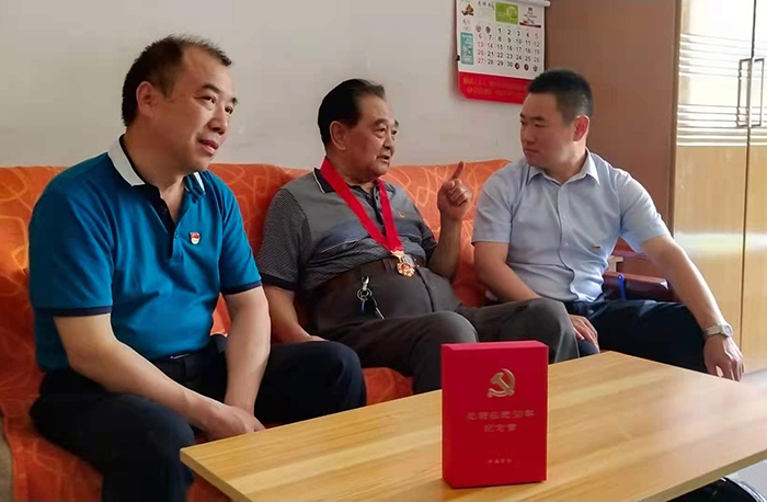 在黨的百年華誕即將到來(lái)之際,6月23日,隊(duì)黨委書記袁勝超、紀(jì)委書記楊顯文上門為老黨員頒發(fā)“光榮在黨50年”紀(jì)念章。