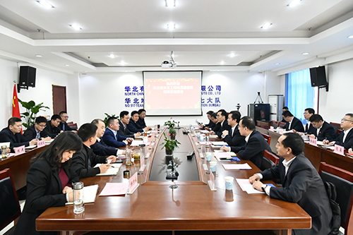 袁勝超對(duì)李亞東一行到訪表示歡迎。他指出,水勘院與五一七隊(duì)同根同源,具有共同的“三光榮”精神根脈、在水文地質(zhì)主專業(yè)上具有各自的優(yōu)勢(shì)。長(zhǎng)期以來,雙方在多個(gè)項(xiàng)目建設(shè)中建立了良好的合作關(guān)系,希望雙方充分發(fā)揮各自技術(shù)優(yōu)勢(shì),在礦區(qū)水文地質(zhì)領(lǐng)域智能化和數(shù)字化、重大科研技術(shù)攻關(guān)、深化黨建與業(yè)務(wù)深度融合等方面拓展更大合作空間,創(chuàng)造更多合作機(jī)會(huì),實(shí)現(xiàn)多層次、多領(lǐng)域的合作交流。