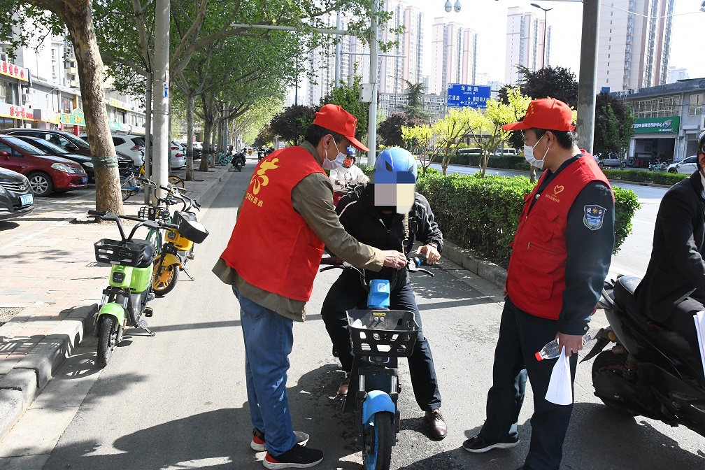 活動(dòng)期間,志愿者身著紅色志愿服,根據(jù)分工安排,在兩個(gè)小區(qū)門(mén)口協(xié)助門(mén)衛(wèi)不厭其煩地對(duì)未戴安全頭盔的行人進(jìn)行勸導(dǎo):出行時(shí)要正確佩戴安全頭盔,告知其各類(lèi)違法行為的危害及后果,督促其立即改正;對(duì)尚未登記上牌的電動(dòng)自行車(chē)車(chē)主進(jìn)行提醒:到公安交管部門(mén)設(shè)置的登記上牌網(wǎng)點(diǎn)辦理登記備案業(yè)務(wù)。他們以高度的社會(huì)責(zé)任感和昂揚(yáng)的精神面貌展現(xiàn)出了我隊(duì)的良好形象,詮釋了志愿服務(wù)的精神,也為城市增添了一道靚麗的風(fēng)景線。