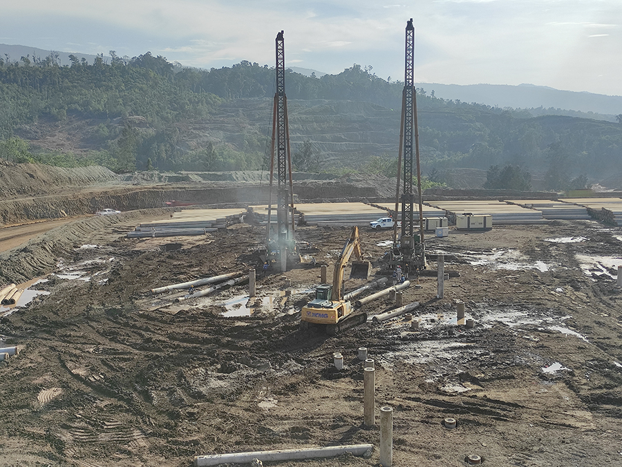面對(duì)諸多難題,項(xiàng)目部一方面積極協(xié)調(diào),為項(xiàng)目配備了經(jīng)驗(yàn)豐富的管理技術(shù)人員,充實(shí)了施工隊(duì)伍;另一方面科學(xué)組織施工,根據(jù)地勘報(bào)告,結(jié)合地形以及采礦礦坑位置,在綜合考量各種因素后進(jìn)行配樁,并根據(jù)實(shí)際情況及時(shí)調(diào)整。在全體員工的共同努力下,印尼公司成為多家施工隊(duì)伍中率先將管樁損耗率控制在3%以下的施工隊(duì)伍,施工質(zhì)量和施工效率名列前茅,得到了業(yè)主的充分肯定。