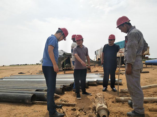 副隊長袁勝超(主持工作)在剛果(金)公司和蘇丹公司調(diào)研期間,先后來到剛果(金)公司PE527項目駐地、魯杰巴礦山施工現(xiàn)場、紫金礦業(yè)集團穆索諾伊礦業(yè)項目施工現(xiàn)場、金川公司如瓦西礦業(yè)穆松尼項目施工現(xiàn)場和蘇丹公司北科爾多凡省水井施工項目現(xiàn)場檢查指導(dǎo)工作。每到一處,袁隊長對堅守在一線的員工進行了慰問,詳細地了解了一線人員的生活和工作情況,要求項目部一定要做好后勤保障及飲食飲水安全工作,保證讓員工安心工作。袁隊長對每個項目進行了實地查看,并對安全生產(chǎn)工作進行了重點檢查,要求各項目部一定要做好安全工作,防患于未然,保證項目順利開展。調(diào)研期間,袁隊長分別聽取了兩公司的生產(chǎn)經(jīng)營情況和黨建工作匯報,并對兩公司 “三會一課”等黨建活動的開展情況以及“三重一大”等基本制度的落實情況進行了現(xiàn)場檢查,同時為全體黨員干部、積極分子和公司骨干上了一次主題為《學(xué)習(xí)貫徹十九大精神,推動企業(yè)高質(zhì)量發(fā)展》的黨課。最后,袁隊長充分肯定了兩公司的取得的成績,并對兩公司今后的發(fā)展分別給予了指導(dǎo)。