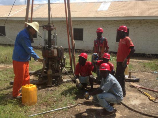 由于該區(qū)域地層是異常堅(jiān) 硬的輝綠巖,施工伊始工作人員就遇到了困難,鉆進(jìn)相當(dāng)緩慢。機(jī)長(zhǎng)時(shí)良橋邊干變分析原因,根據(jù)實(shí)際情況,對(duì)連體泥漿泵進(jìn)行了改良,提高了施工效率,但這還是沒(méi)能達(dá)到讓項(xiàng)目組滿(mǎn)意的施工效果。為了確保按時(shí)完工,大家不得不取消了午休時(shí)間,加班加點(diǎn)施工。后來(lái)項(xiàng)目組第二批成員抵達(dá)南蘇丹后也立即將背包鉆機(jī)投入到朱巴醫(yī)院詳勘工作,大小兩臺(tái)鉆機(jī)配合,進(jìn)度有了很大提高。