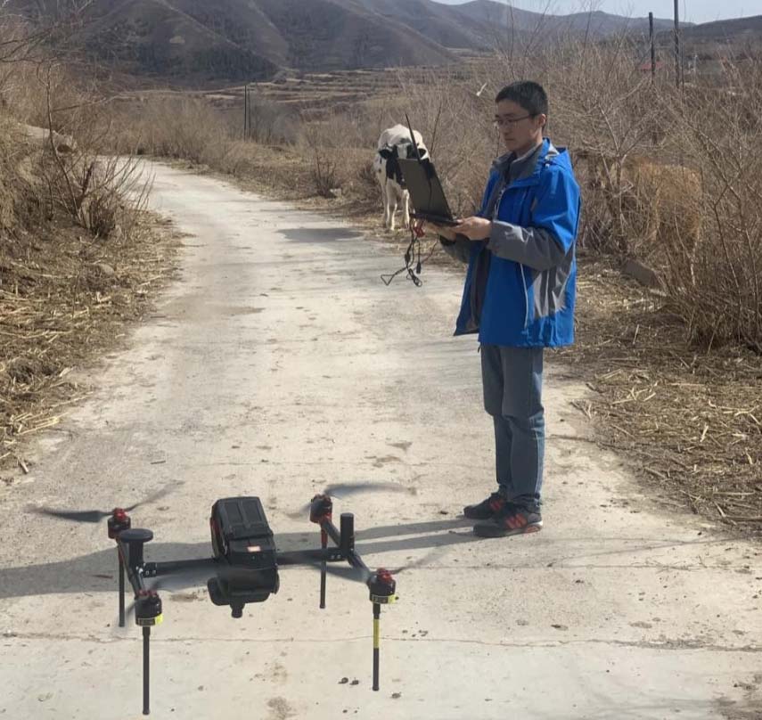 該項(xiàng)目工期緊,任務(wù)重,原計(jì)劃派遣6名技術(shù)人員,分三個(gè)航測(cè)作業(yè)組于半個(gè)月內(nèi)完成外業(yè)數(shù)據(jù)采集,但受當(dāng)?shù)匾咔榉揽赜绊?,只能協(xié)調(diào)2名技術(shù)人員一個(gè)航測(cè)組入場(chǎng)。項(xiàng)目組進(jìn)場(chǎng)后嚴(yán)格做好疫情防控措施,迅速作業(yè),測(cè)區(qū)內(nèi)地勢(shì)高差起伏大,通往山頂?shù)牡缆穾缀鯖](méi)有,每天只能步行到山頂布設(shè)控制點(diǎn),攜帶面包、礦泉水等食物進(jìn)行充饑,同時(shí)還要克服惡劣天氣影響,一干就是一整天,晚上返回營(yíng)地繼續(xù)整理數(shù)據(jù),作業(yè)過(guò)程十分艱苦。張家口3-4月的大風(fēng)天氣,導(dǎo)致無(wú)人機(jī)每天可作業(yè)時(shí)間嚴(yán)重受限,項(xiàng)目組合理規(guī)劃作業(yè)流程,上午天氣晴朗時(shí)進(jìn)行航測(cè),下午風(fēng)力變大后進(jìn)行控制點(diǎn)布設(shè),數(shù)據(jù)接收后第一時(shí)間傳給單位內(nèi)業(yè)組,做到了內(nèi)外業(yè)工作無(wú)縫銜接。