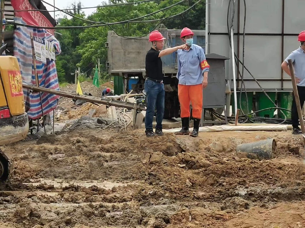 近日,隊(duì)黨委副書記、隊(duì)長(zhǎng)劉智賢赴地下水環(huán)境工程公司江西永平銅礦項(xiàng)目調(diào)研。調(diào)研期間,劉智賢隊(duì)長(zhǎng)深入垂直防滲帷幕施工現(xiàn)場(chǎng)檢查施工和安全管理情況,了解“安全生產(chǎn)月”活動(dòng)及疫情防控工作落實(shí)等情況,聽取項(xiàng)目部施工情況匯報(bào),親切慰問一線員工,并與一線員工進(jìn)行了深入座談交流。